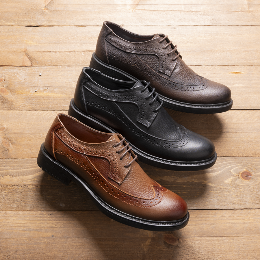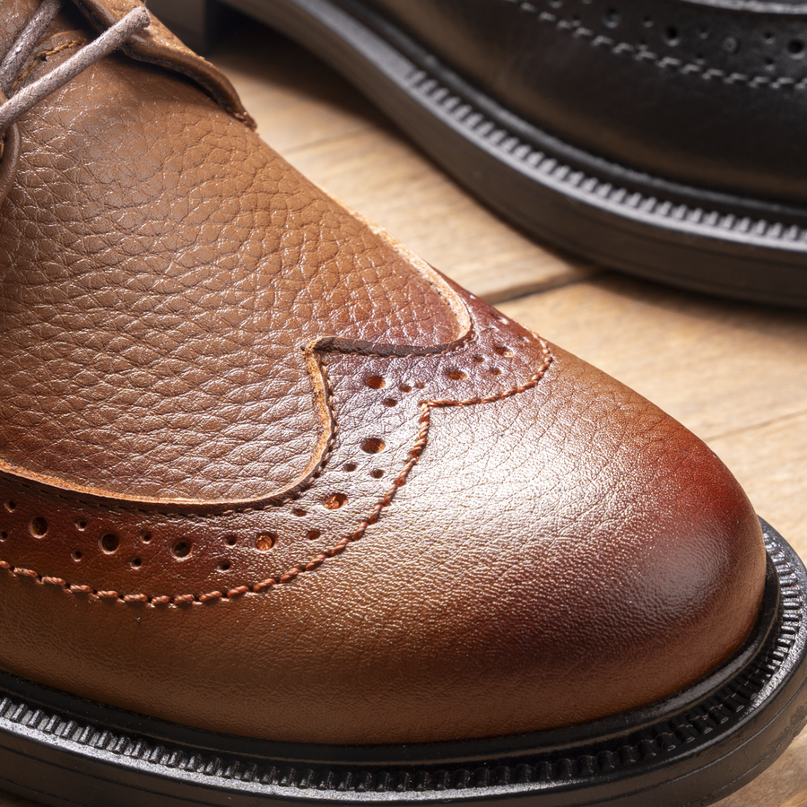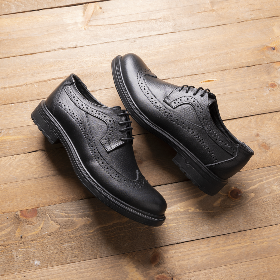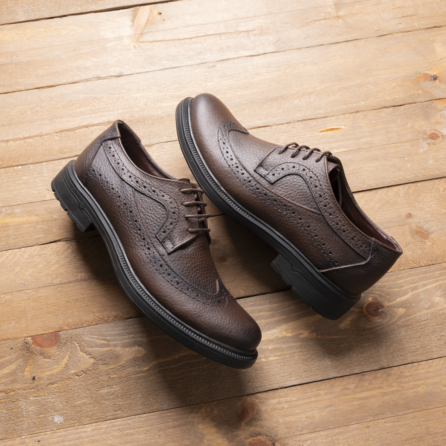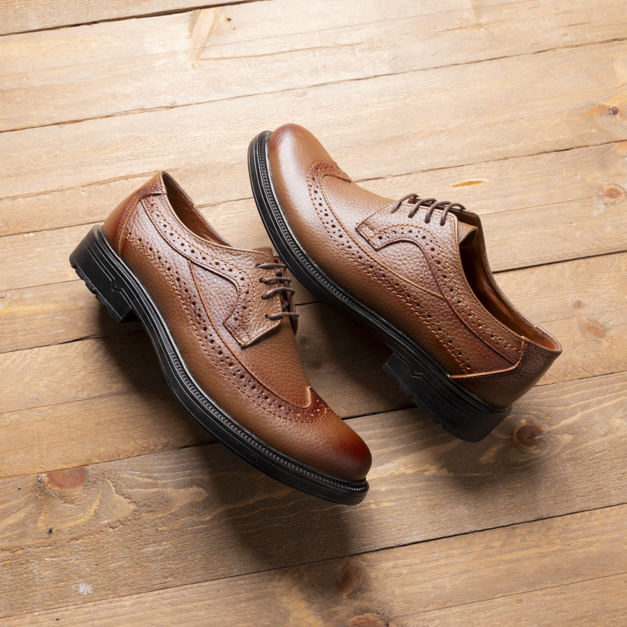 مصنوع من أجود أنواع الجلد الطبيعي مع نعل رابر عالي الجودة يمنحك راحة وثبات طول اليوم.