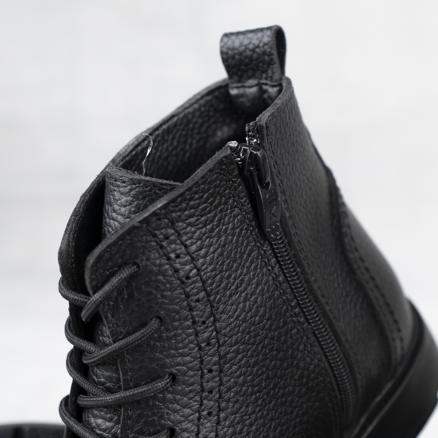 الحذاء بيجمع بين الرباط الكلاسيكي و السوستة الجانبية عشان يسهل اللبس ويضمن مظهر أنيق وتقفيل محترم جدًا.