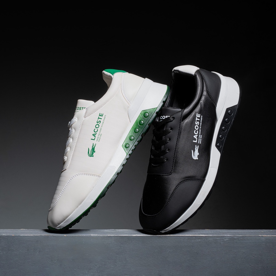 سنيكر LaCoste SV57 – جلد مستورد فاخر مع نعل TPR ملون مضاد للانزلاق وفرش طبي مريح. تصميم عملي أنيق للخروجات والمهام اليومية. متوفر بالأسود والأبيض .