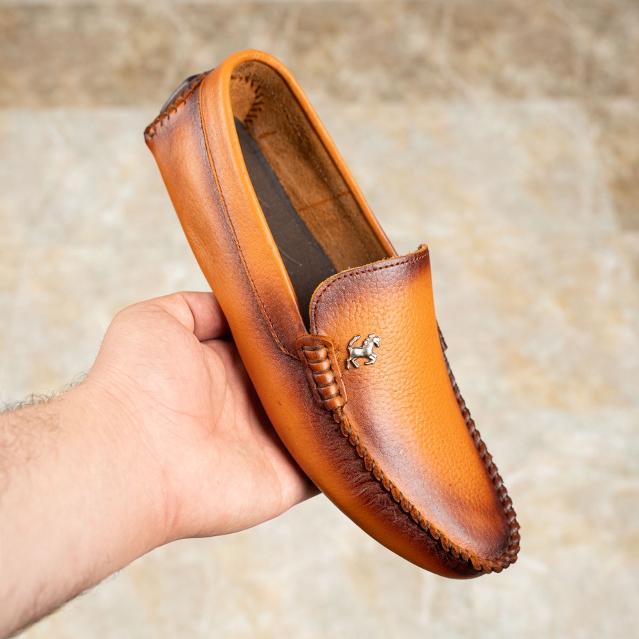حذاء جلد طبيعي 100% بتصميم أنيق عملي، مريح وخفيف للارتداء اليومي أو المناسبات الكاجوال. متوفر بالأسود والهافان.