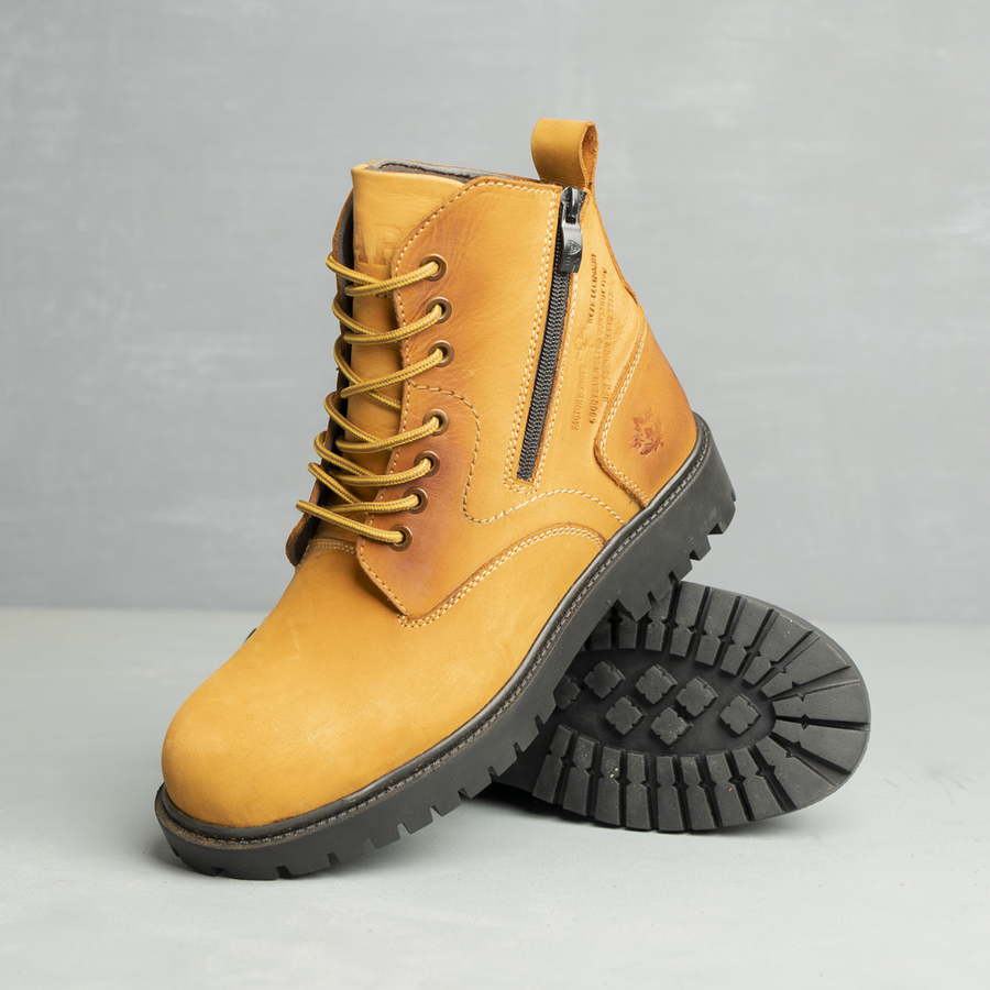 السوستة الجانبية بتخلي الحذاء سهل وسريع في الارتداء والخلع، والتصميم القوي بيجمع بين الحماية والشكل العملي.
